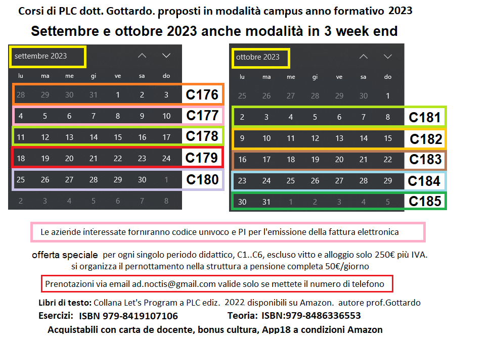 - Nei week end PLC tutti i livelli, elettronica e Microcontrollori PIC.