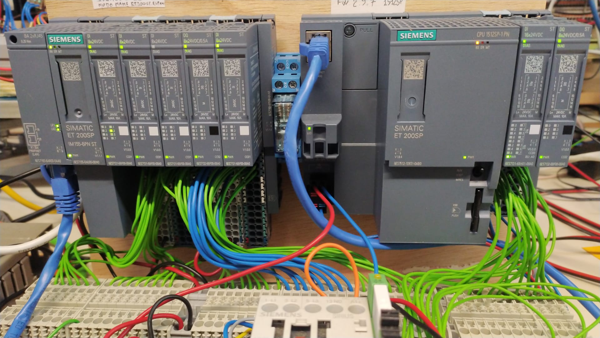 Tre delle postazioni, come visibile nell’immagine sopra, sono montate nella stessa guida omega delle ET200 e le corrispettive di altre marche, presenti per esercitarsi nell’stallazione dei file GSD.