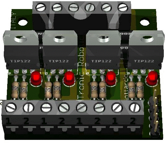 I diodi di ricircolo sono gia' integrati nel pcb, e sono molto utile dato che benche' questi TIP non siano particolarmente veloci in commutazione possono tranquillamente trasferite un comando PWM a 20kHz su motori DC medio piccoli.