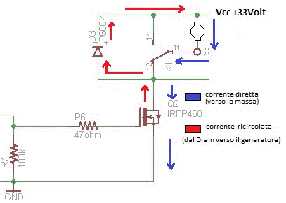 Per quanto riguarda il diodo di ricircolo P600K (o in alternativa FR303) questo si troverà istallato nella corretta posizione. Ovvio è che se l'applicazione richiedesse una regolazione definitiva della velocità e che questa fosse disponibile all'utente, allora si potrà sostituire il potenziometro con il trimmer come del resto indicato nella serigrafia.