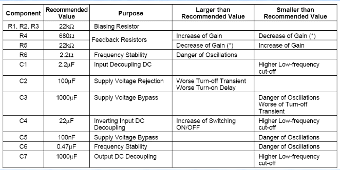 Benché la casa costruttrice metta in evidenza nel "tipical application" un condensatore di disaccoppiamento del valore di 1000uF, questo valore potrebbe essere insufficiente per estendere la banda passante in basso fino al valore limite di 20Hz.