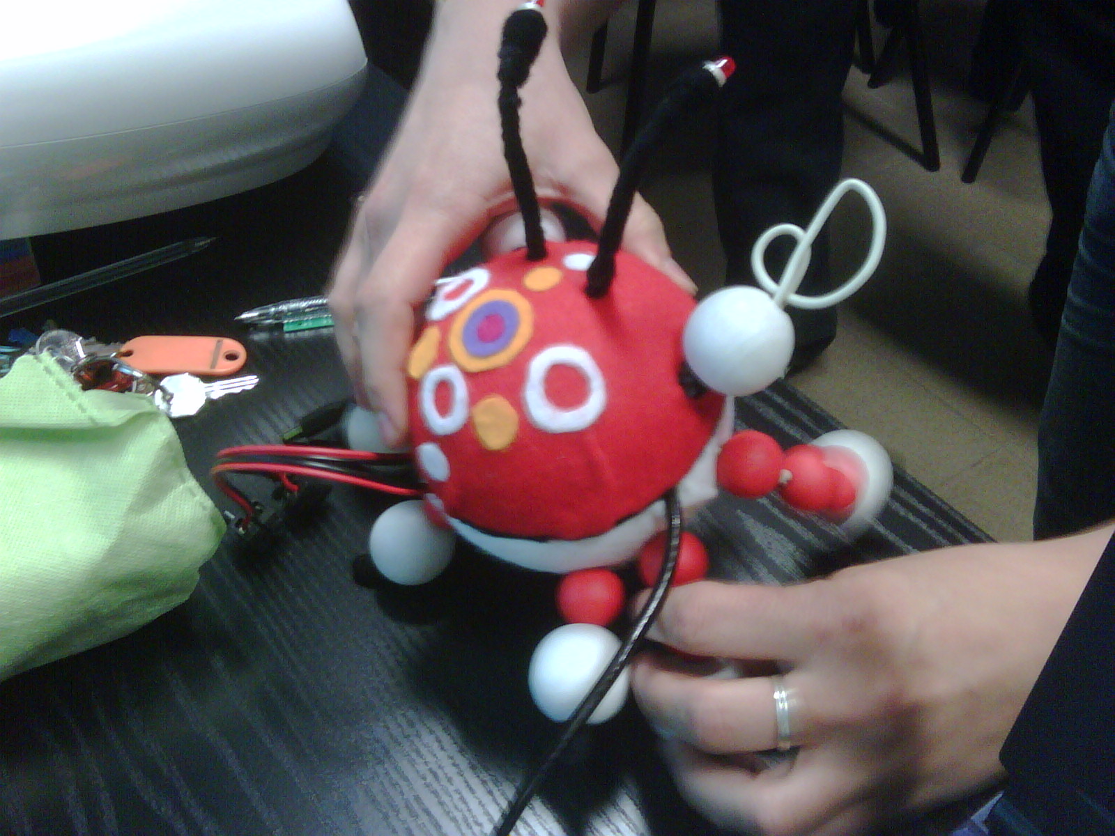 Nella foto vediamo un esemplare di Mr. Funky realizzato dall'allieva del centro culturale ZIP, esteticamente molto curato. Molto bella è la soluzione della fascia per i capelli e la bocca disegnata di traverso che mette quel tocco di allegria in più. Nella foto sottostante un'altra bella foto in cui è presente l'ospite giapponese signorina Sakamoto che supervisiona il progetto. Chissà se un giorno vedremo un Mr. Funky "made in Japan".