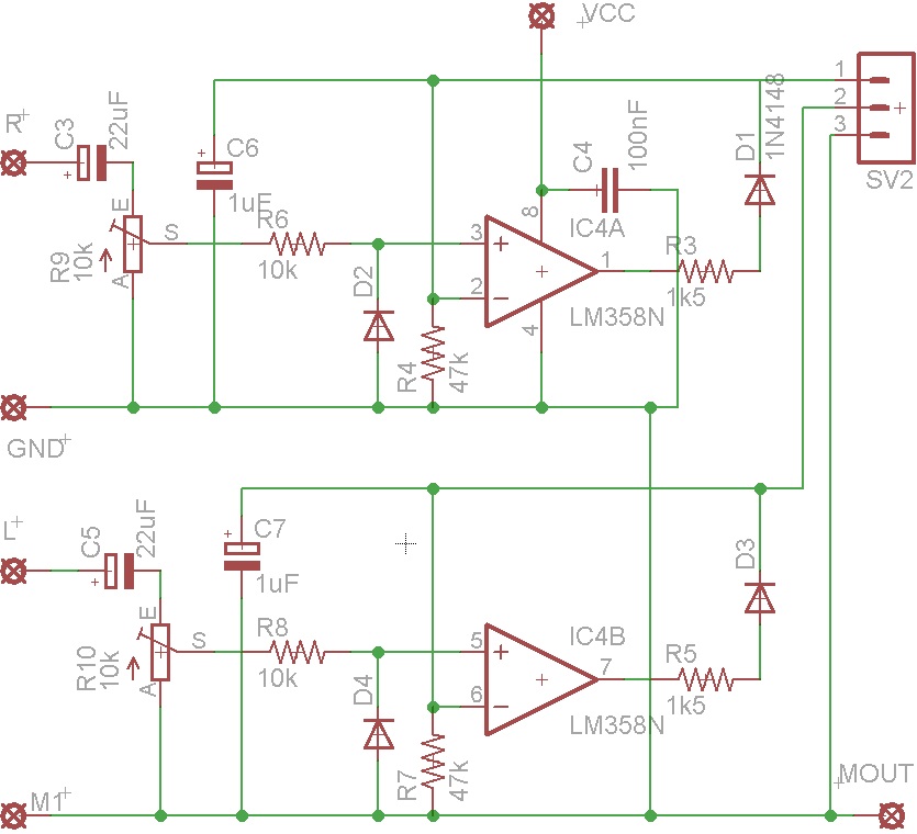 Necessariamente si deve elaborare il segnale musicale prelevato dalla fonte audio eseguendo il taglio della semionda negativa, in modo da non mettere in crisi i convertitori AD del PIC che ne potrebbero risultare addirittura danneggiati. Si preferisce anche eseguire la compressione logaritmica del segnale in maniera hardware semplificando di conseguenza il firmware. .Tale elaborazione è svolta dall'interfaccia che chiameremo Micro-GT mini shield Vu-meter, con numero progressivo 2, rispetto alla serie di shields che il team G-Tronic intende sviluppare per la Micro-GT mini. Lo shield numero 1 verrà presentato da Gottardo nel tutolrial successivo a questo, ovvero il numero 15.