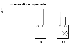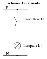 Questo schema utilizza un interruttore unipolare (quindi adatto ad interrompere la continuità elettrica di un solo filo) per comandare l’accensione di una lampada.