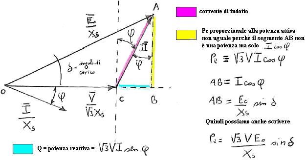 La potenza attiva è pari a SA sen δ = AB = (Eo/Xd) sin δ + AM
