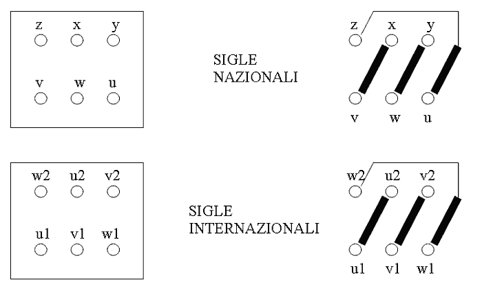 Di seguito sono riportati gli schemi di collegamento degli avvolgimenti con le sigle nazionale ed internazionali.