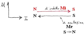 Dopo che ha avuto origine Me si sviluppa la forza magneto motrice di indotto Mi ( come reazione a Me ) di segno concorde Me abbiamo la così detta azione diretta o azione Magnetizzante.