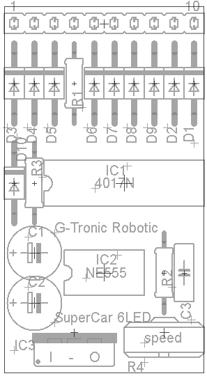 La velocità di scorrimento è stata fissata a mio gusto personale aggiustabile con il trimmer in un range abbastanza ampio, ma è sempre possibile risistemare le basi tempi dell'onda quadra modificando gli elementi del gruppo RC che forniscono la base tempi al timer NE555. questo potrebbe essere un utile esercizio per qli allievi.